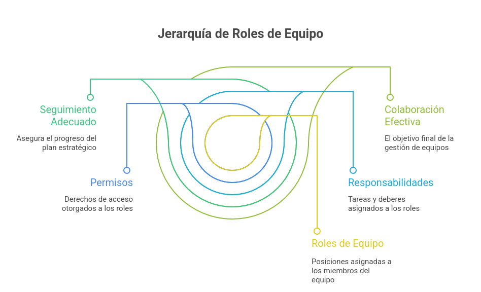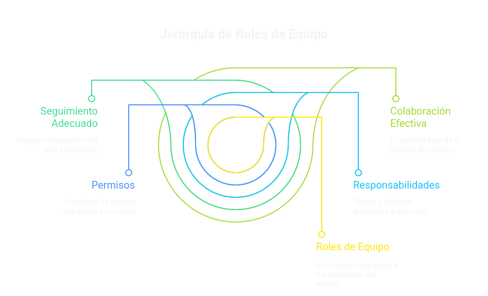 La sección de equipos permite administrar a los miembros asociados al plan estratégico, se los diferencia con los siguientes roles: