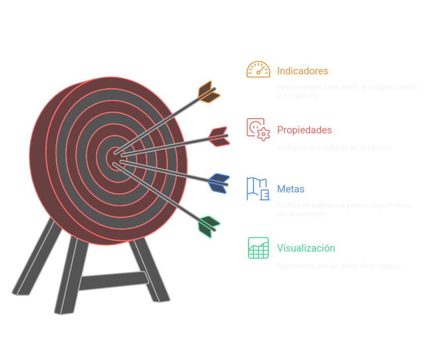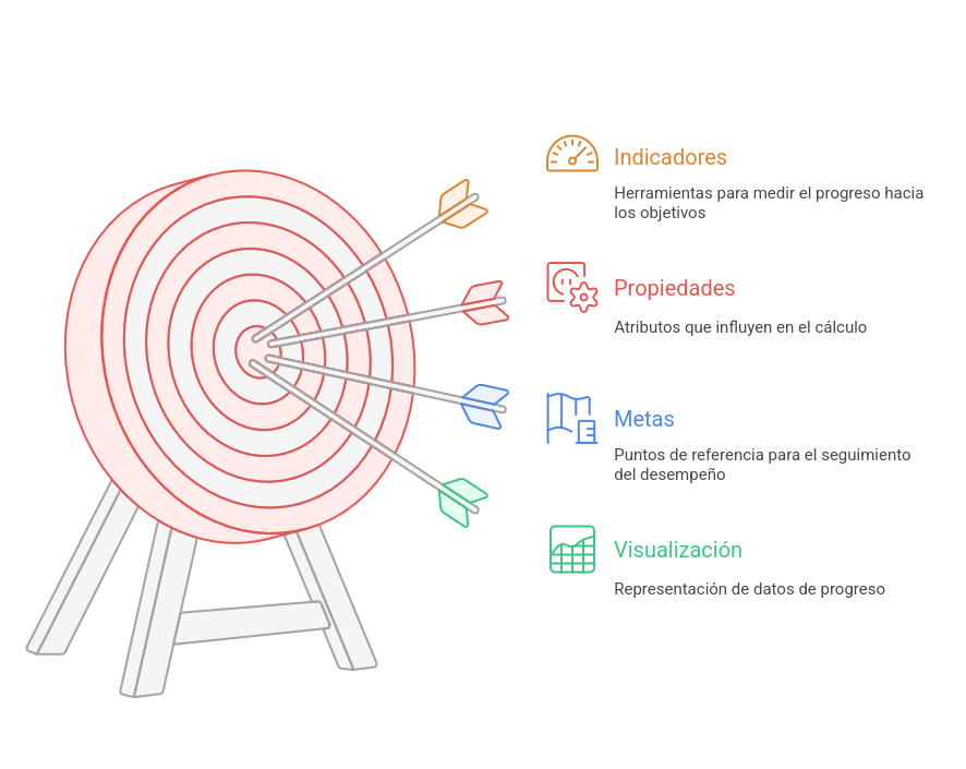 Los indicadores permiten medir de forma objetiva el grado de cumplimiento de los objetivos estratégicos definidos en el plan. Cada indicador se asocia a un único objetivo y cuenta con propiedades configurables que determinan cómo se calcula y se visualiza su avance.