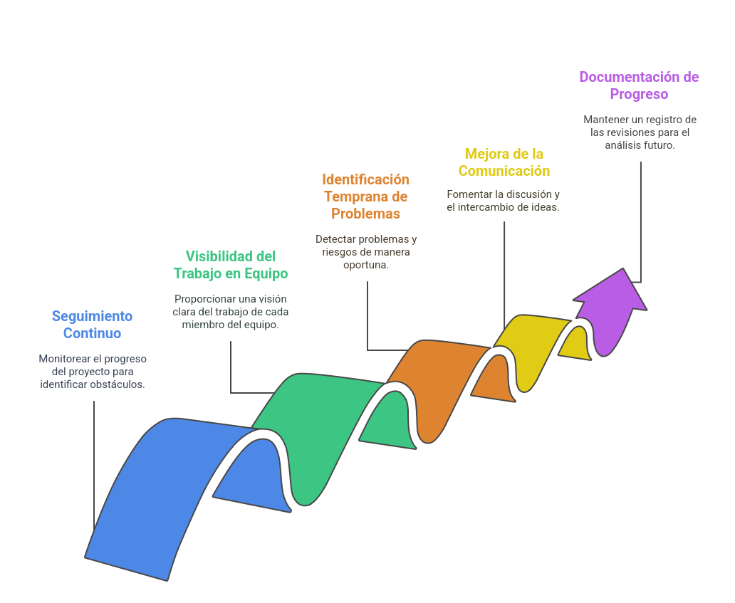 La funcionalidad de Daily Review permite registrar revisiones del proyecto con el objetivo de hacer seguimiento continuo al trabajo del equipo. Estas revisiones están vinculadas a eventos previamente agendados.